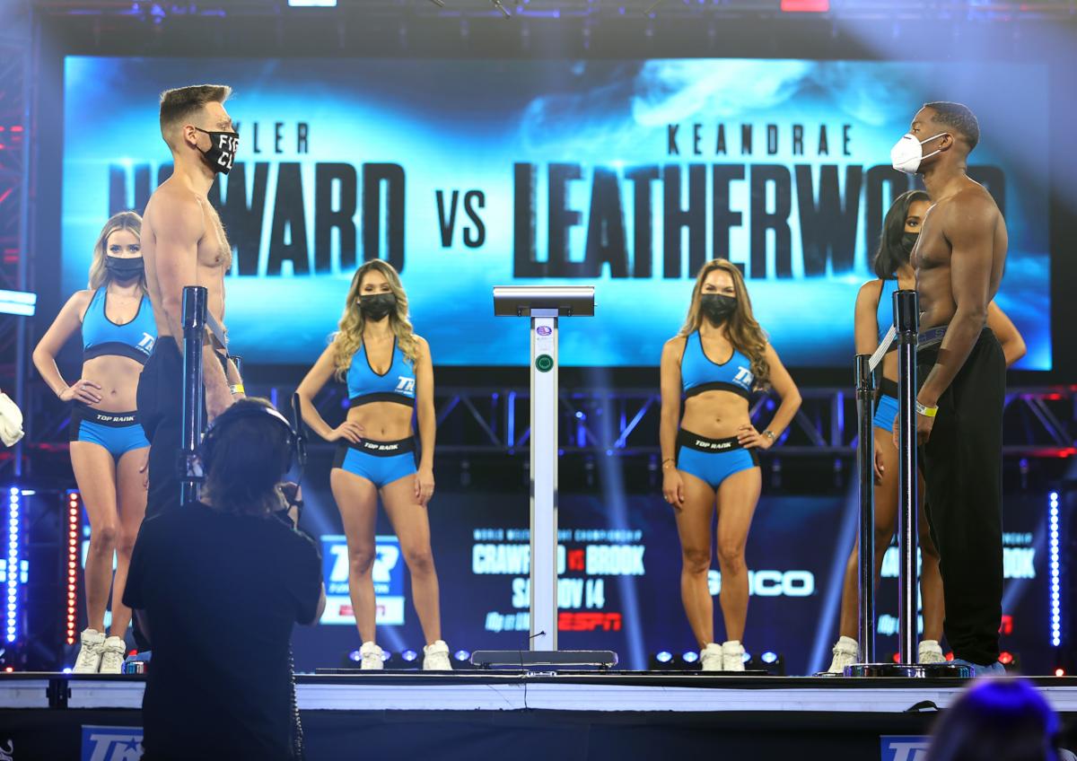 | Howard-Leatherwood weigh-in Photo Credit_ Mikey Williams_Top Rank via Getty Images |